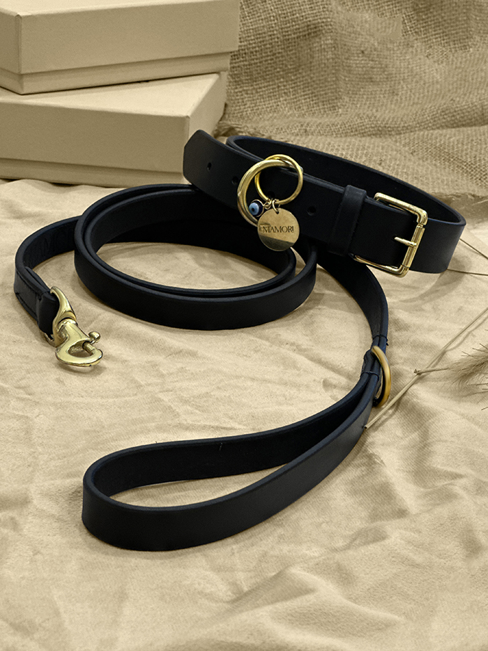 The Walk Set embodies the quiet beauty of connection — a considered pairing that balances strength, design, and sentiment. Handcrafted in genuine leather, both pieces are made to evolve with time — softening, deepening, and carrying the story of your shared life. With solid brass fittings, clean lines, and subtle detailing, The Walk Set sits naturally in your aesthetic world — from city streets to slow mornings at home. Finished with MAMORI’s signature evil eye charm — a symbol of protection, care, and the quiet joy of companionship. Because what you both wear should tell one story.